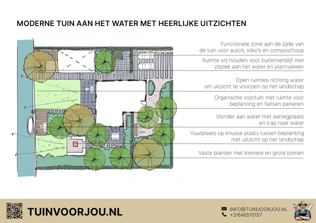 Het schetsontwerp kan gebruikt worden om hoveniers te benaderen of zelf aan de slag te gaan in de tuin!