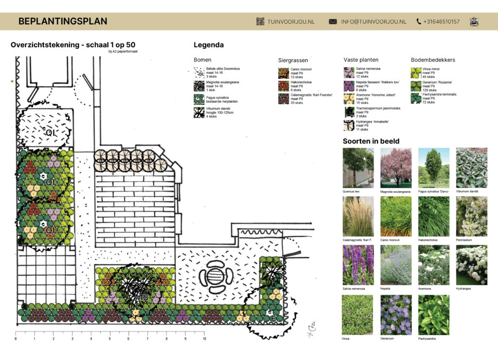 Een beplantingsplan zorgt ervoor dat deze sfeer sterk weggezet wordt en zorgt voor de afstemming tussen de verschillende lagen van beplanting. In een dergelijk plan wordt rekening gehouden met hoogtes van beplanting, bezonning van de locatie en uiteraard het onderhoud van de plantensoorten.